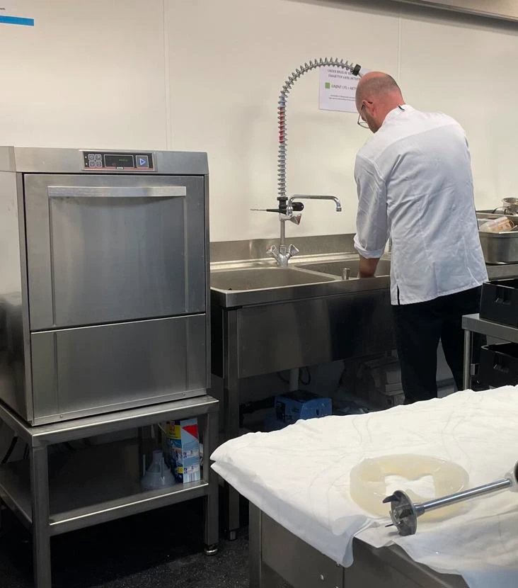 - Öntisztító program: Minden ciklus végén a mosótartály kiürül és tiszta vízzel töltődik fel, így a gép készen áll a következő napi termelésre.