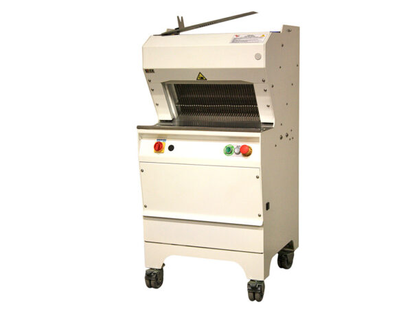 A MECH-MASZ AUTO automata kenyérszeletelő a legjobb választás üzletek és pékségek számára. Kiváló, önálló kenyérszeletelő, amely lehetővé teszi a felhasználók számára a kenyér önálló szeletelését, teljes biztonságban.